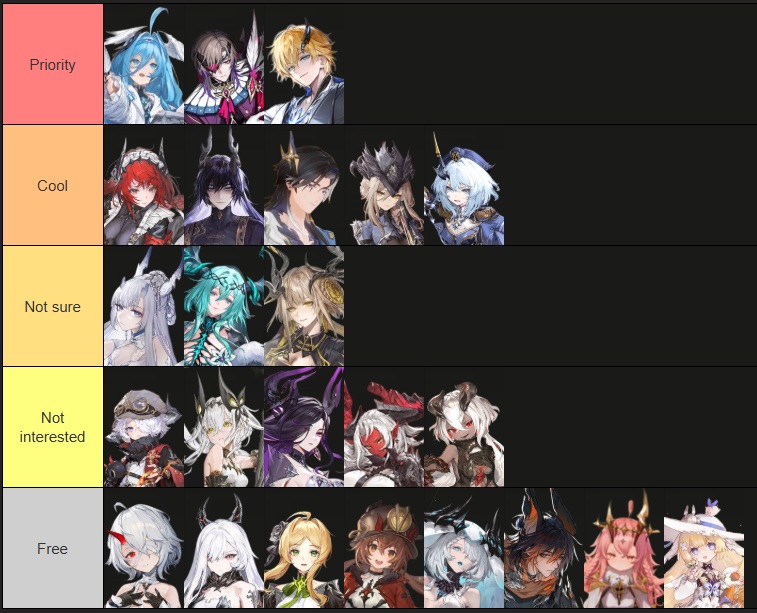 These are the characters I am prioritising. I made this tierlist on "tiermaker"! Let me know c: