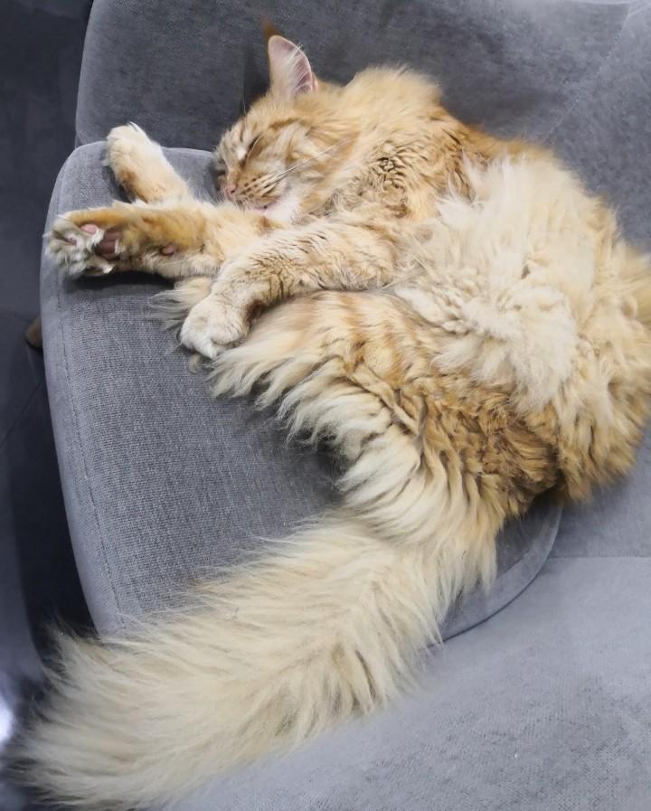 your cat looks sooo fluffy ♡ How cute!