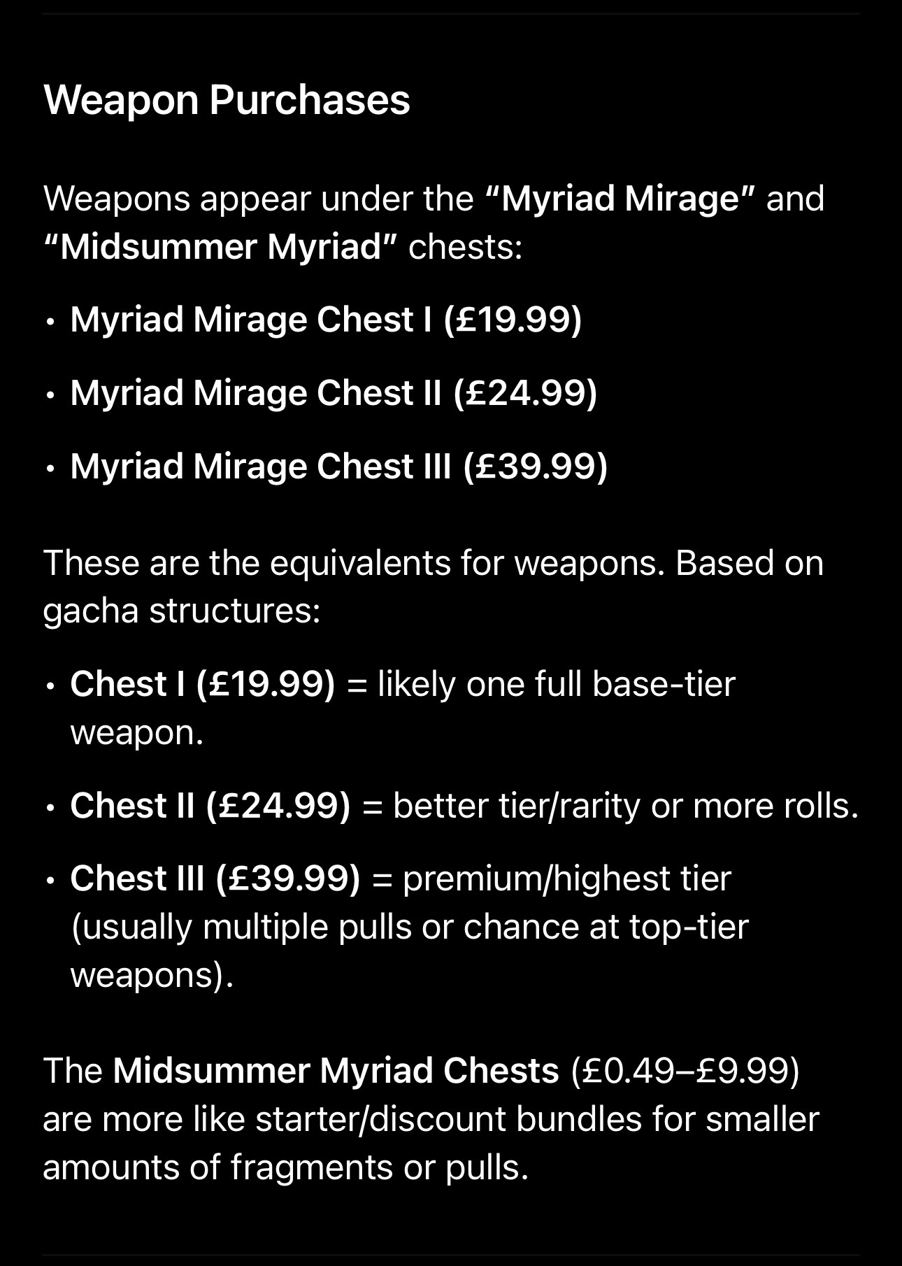 Weapons packs costs