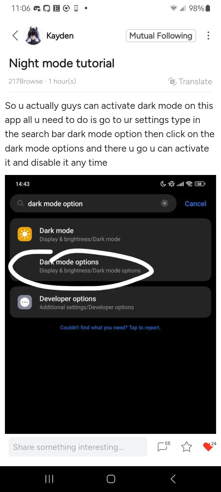 you can also go to developer settings and scroll down to Force Dark Mode that also help