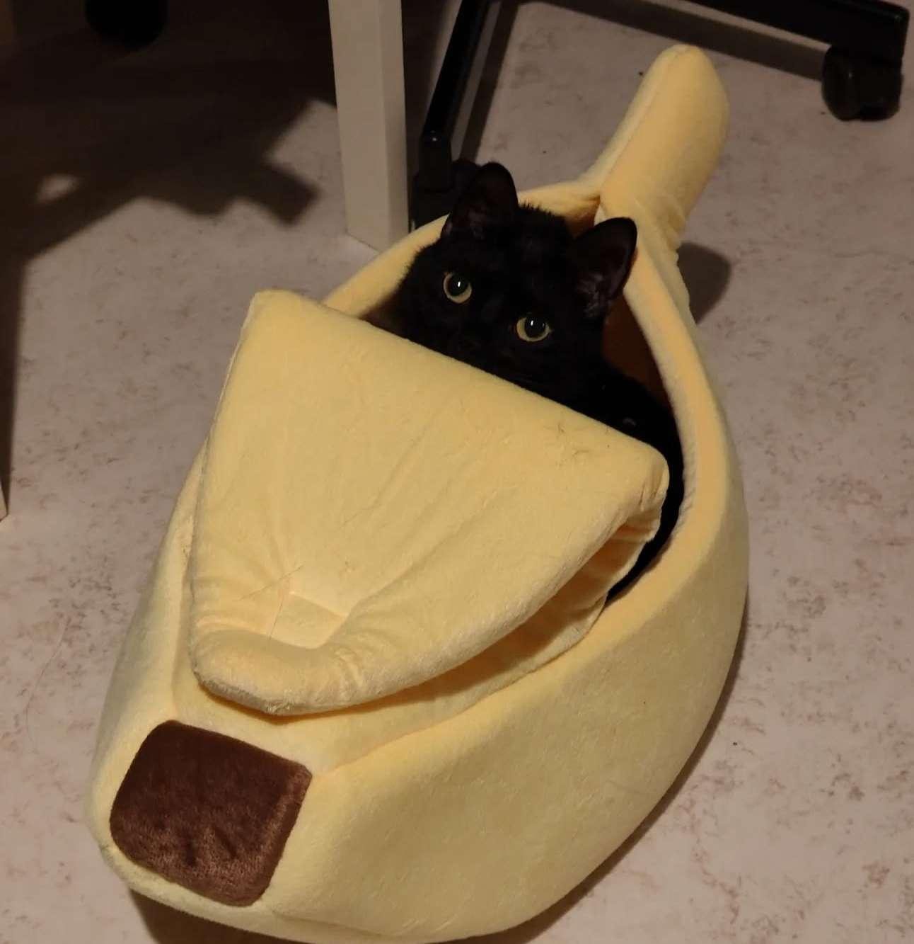 I saw this banana cat bed at the local store, I just had to get it as it made me think of a silly cat animation called "bananya" 😂