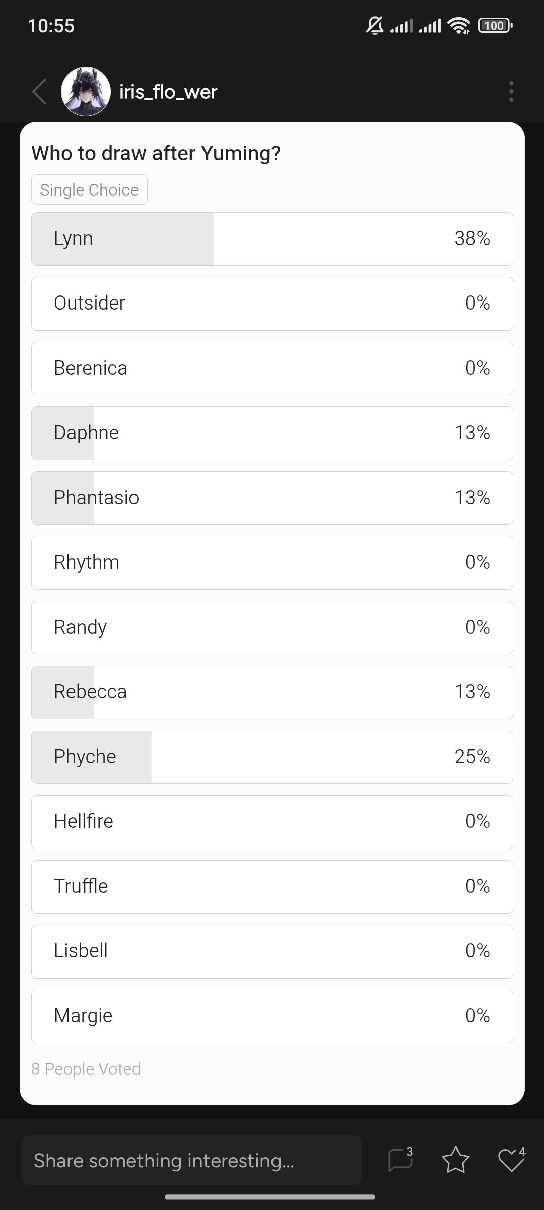 Since Lynn won I'd be drawing her next after Yuming and finishing Sibylle's art. Have fun waiting 😉