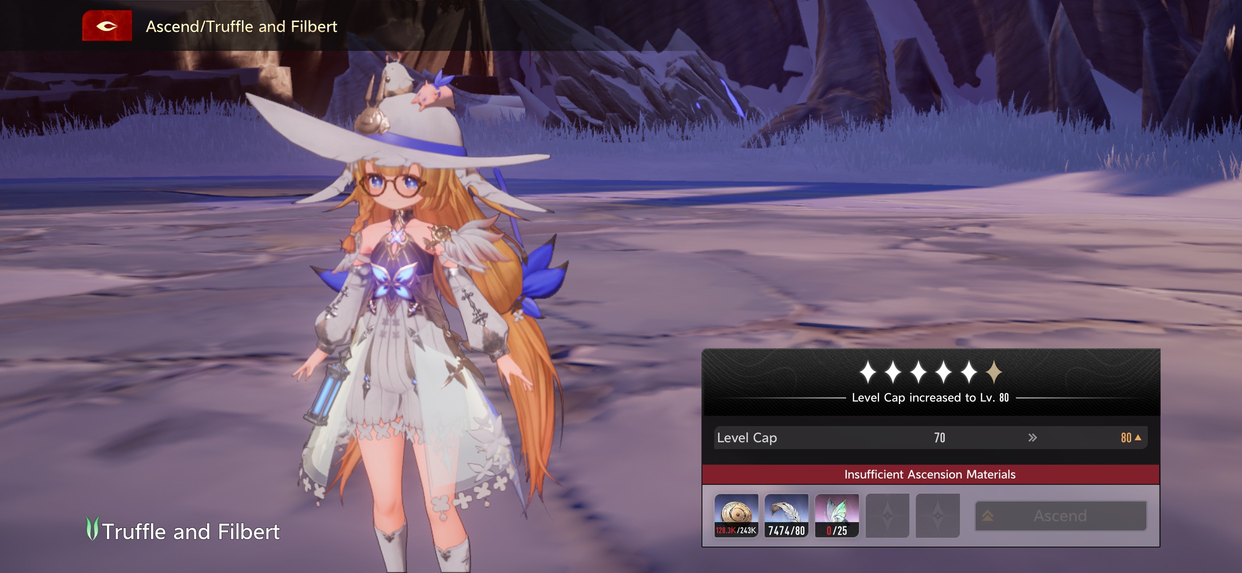 I severely underestimated how difficult lvl 70-80 is. For some reason some characters need more money than others to ascend, but it’s ok I’ve managed. Currently only Psyche and Truffle aren’t ascended for me. I have only four at 80 currently. I’ve tried to focus on skills but ran out of the special rare skill material 😢 Otherwise I got to 62 Trial rank. It’ll be slower once I don’t have much to level. But I’m excited for the update! It’ll be interesting