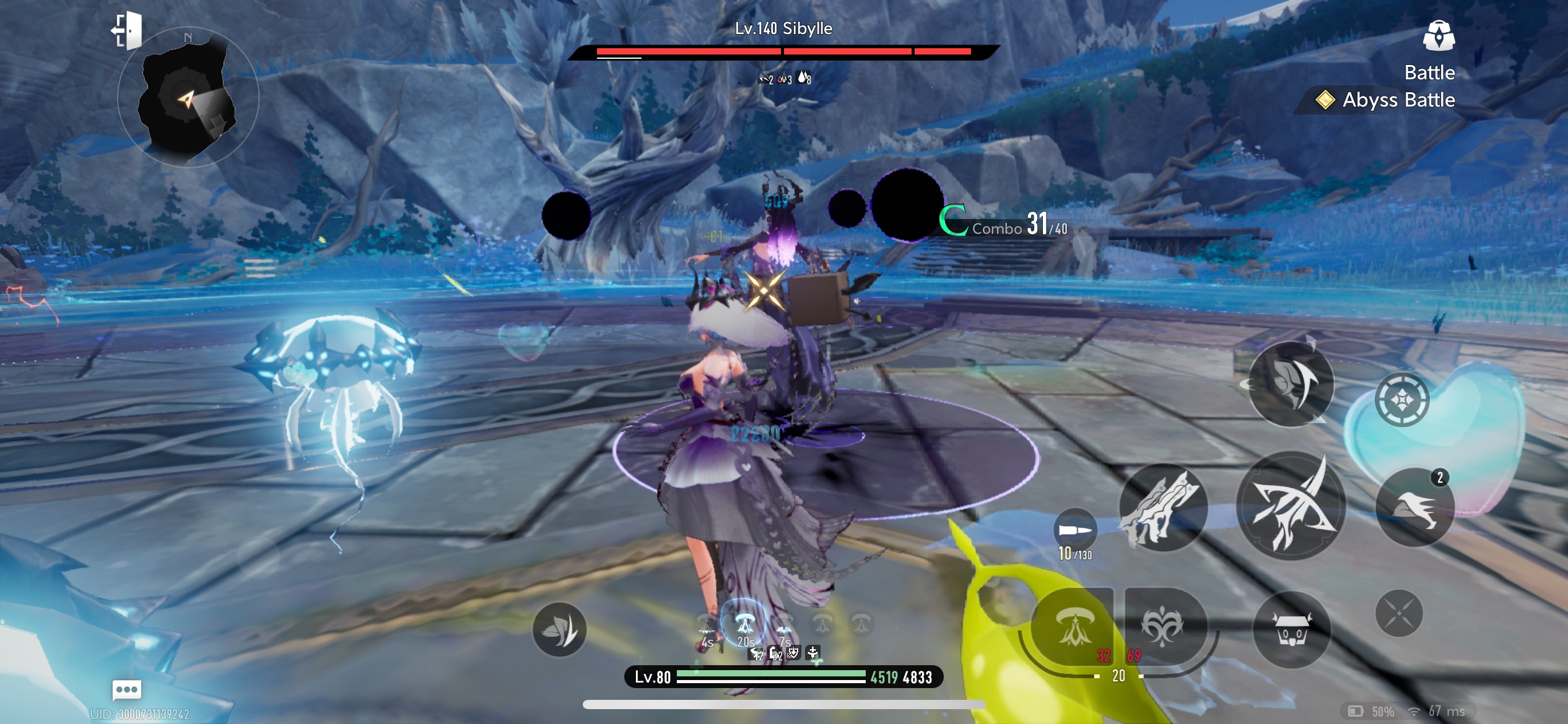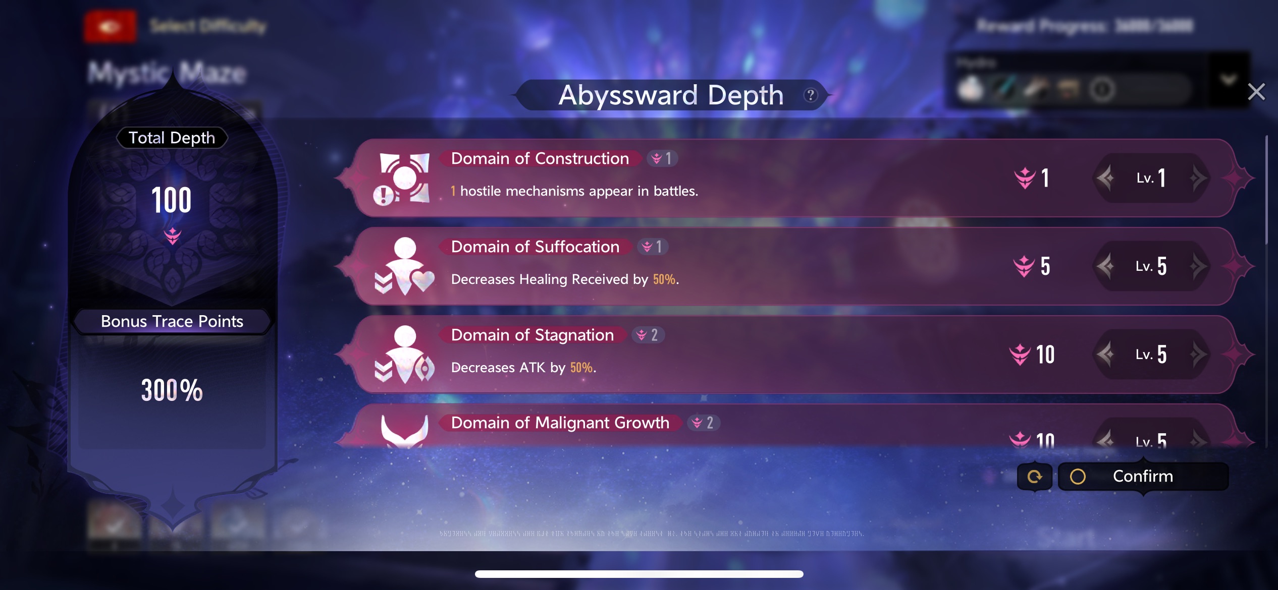 The reason you seem to not be doing any damage is because enemy HP is doubled, so Sybille’s HP bar starts decreasing only once you’ve gotten rid of that extra 100% ^^ Also, I’d take off the Domain of Suffocation and Domain of Stagnation—I’ve recently started playing with all Abysswards except those two, and it’s not too bad 🤷 As for the three below it (the enemy boost ones), try boosting them one level at a time—that’ll help you find your sweet spot ^^