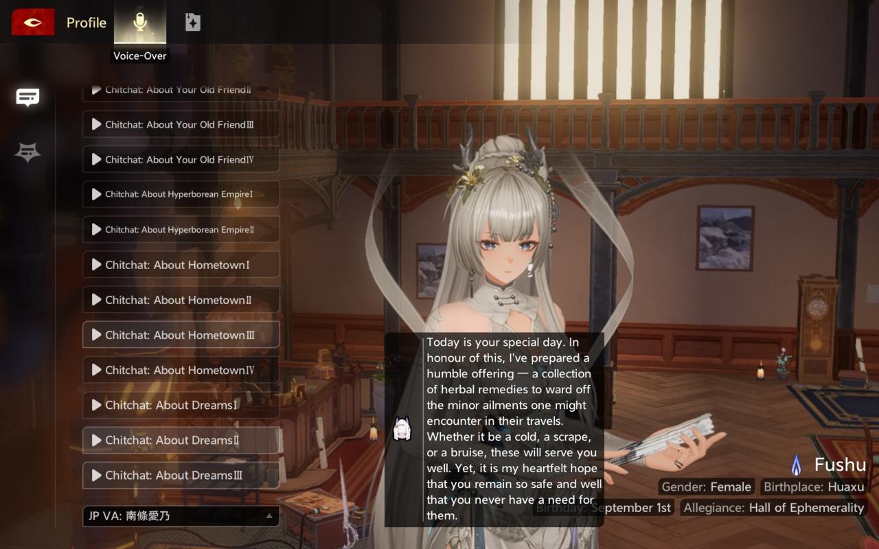While I was looking at the voice lines of the characters, I noticed there is "Birthday Greetings" on bottom.