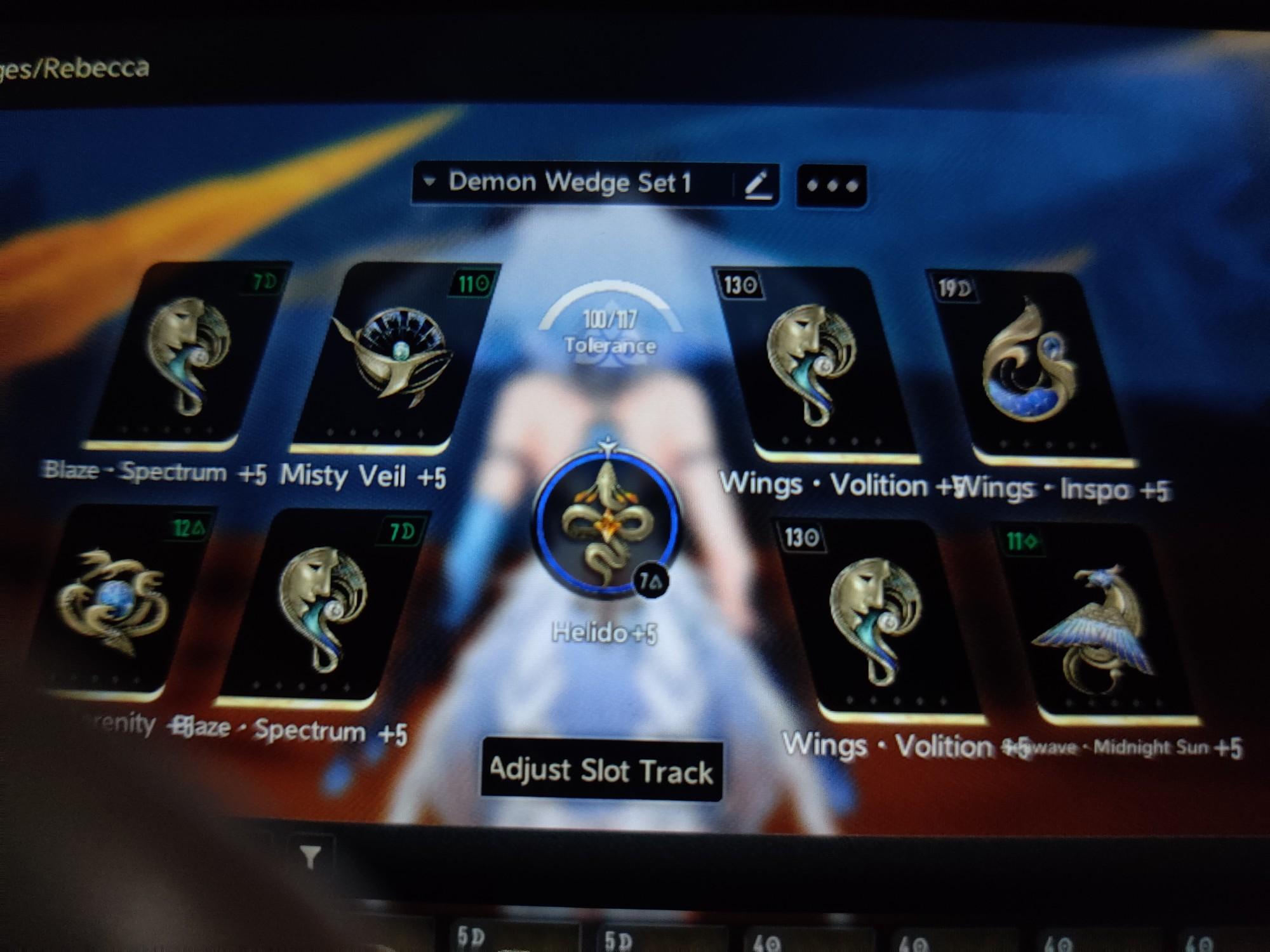 I have a different build on mine. middle : sidestep, Gold DW: 2 spectrum, 2 inspo, griffin, uplift prime, 2 wings. since I play Rebecca with fushu I don't have problem with my sanity regen. but maybe my build not good.