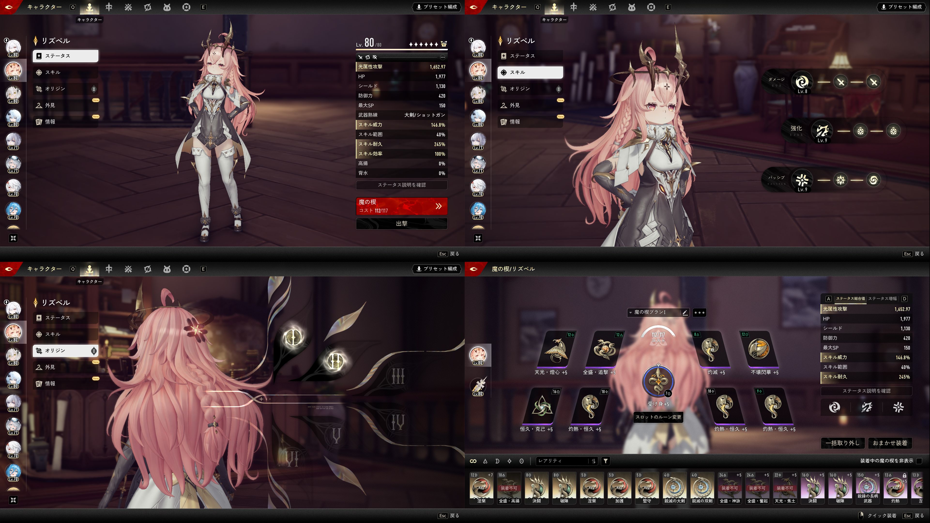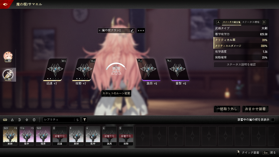 こちらは今回使ったキャラのビルド