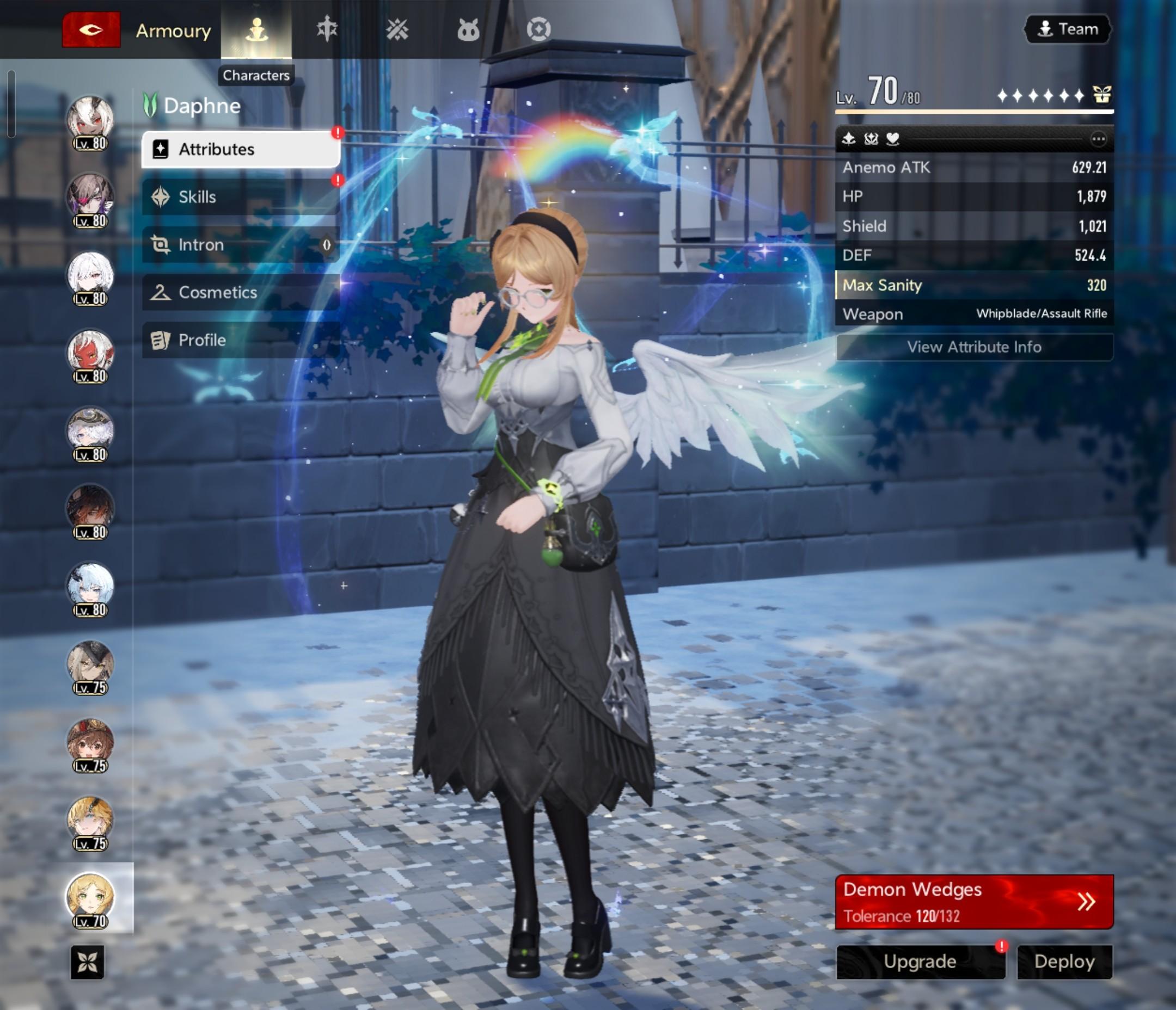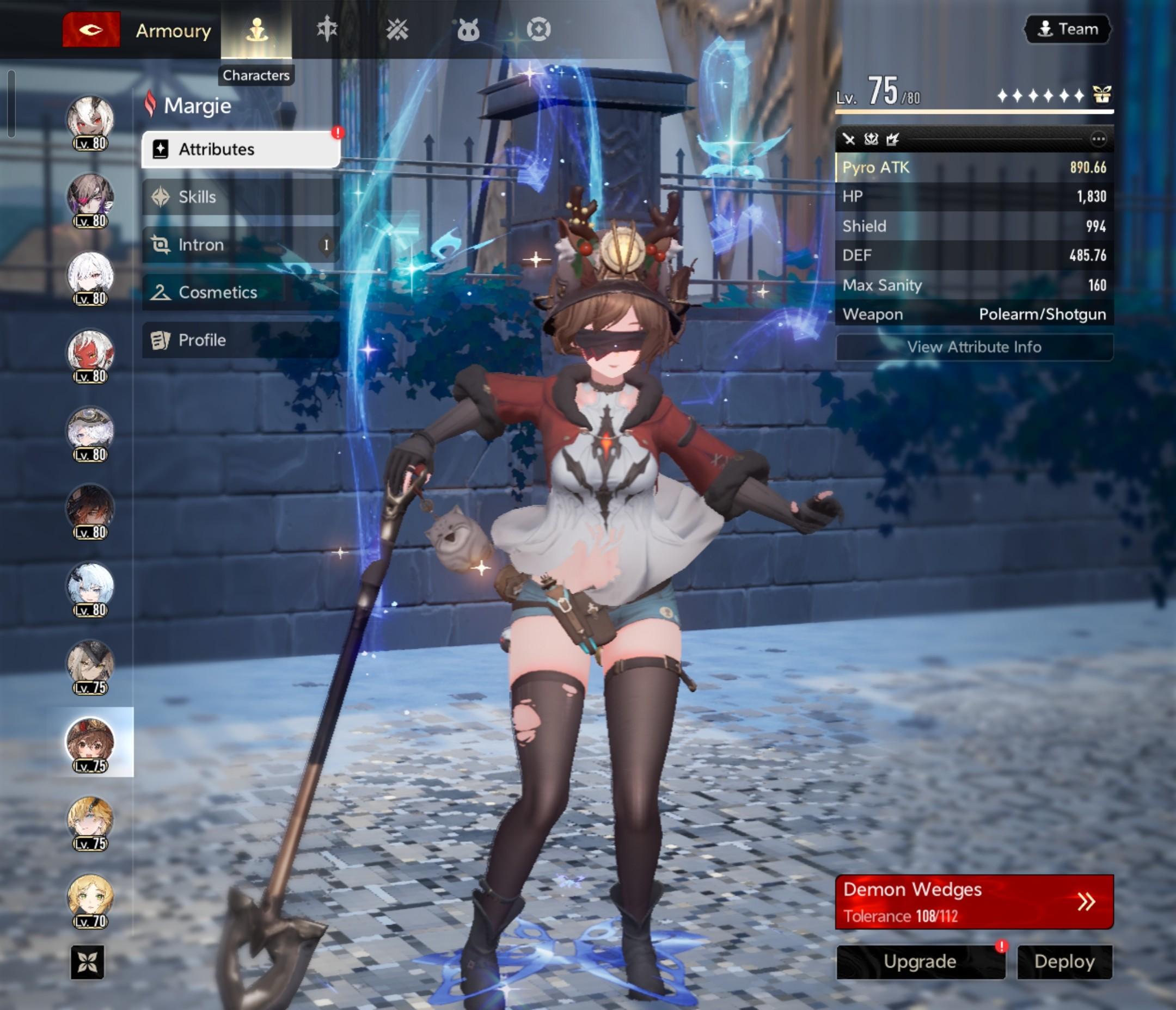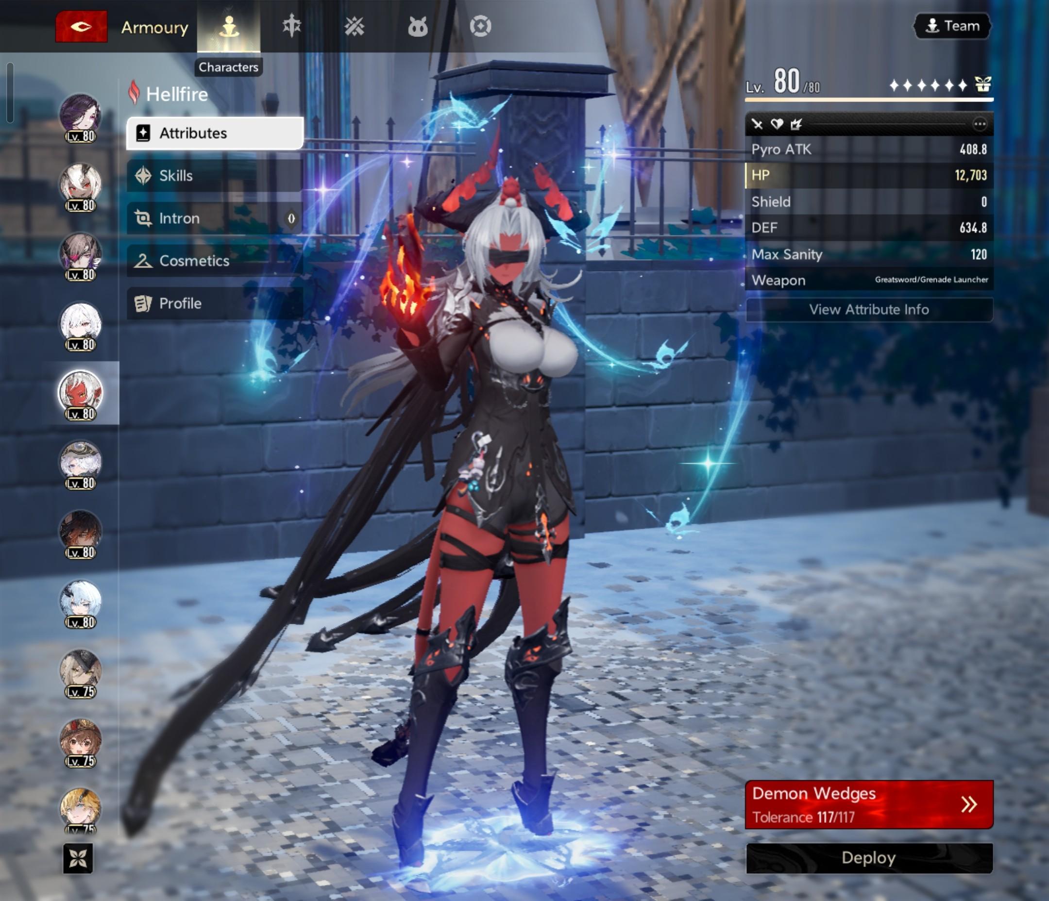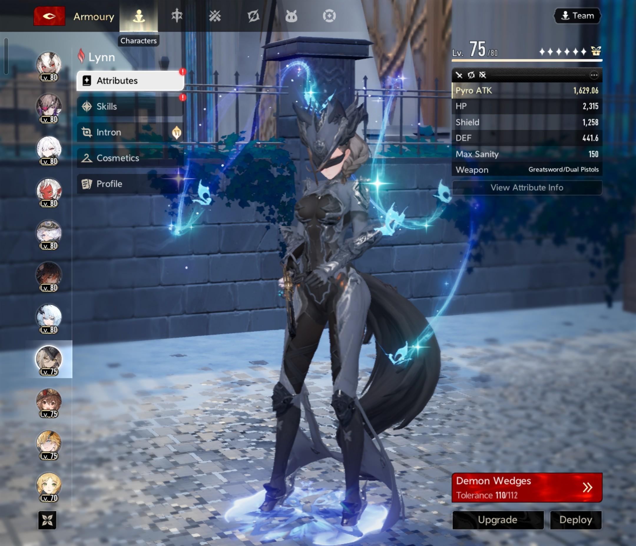 I use i6 Lady Nifle with Embla s5 and Withershade s0, but for the longest time I would play i3 Protagonist with Remnant Reminiscence s0 and Osteobreaker s0 😂 It took me until uh… December to start playing characters besides MC (like in general)… and I started playing the game on release day… 🫣 So Protagonist works lol, but Nifle is much better, especially once you start upping your Abysswards 😅