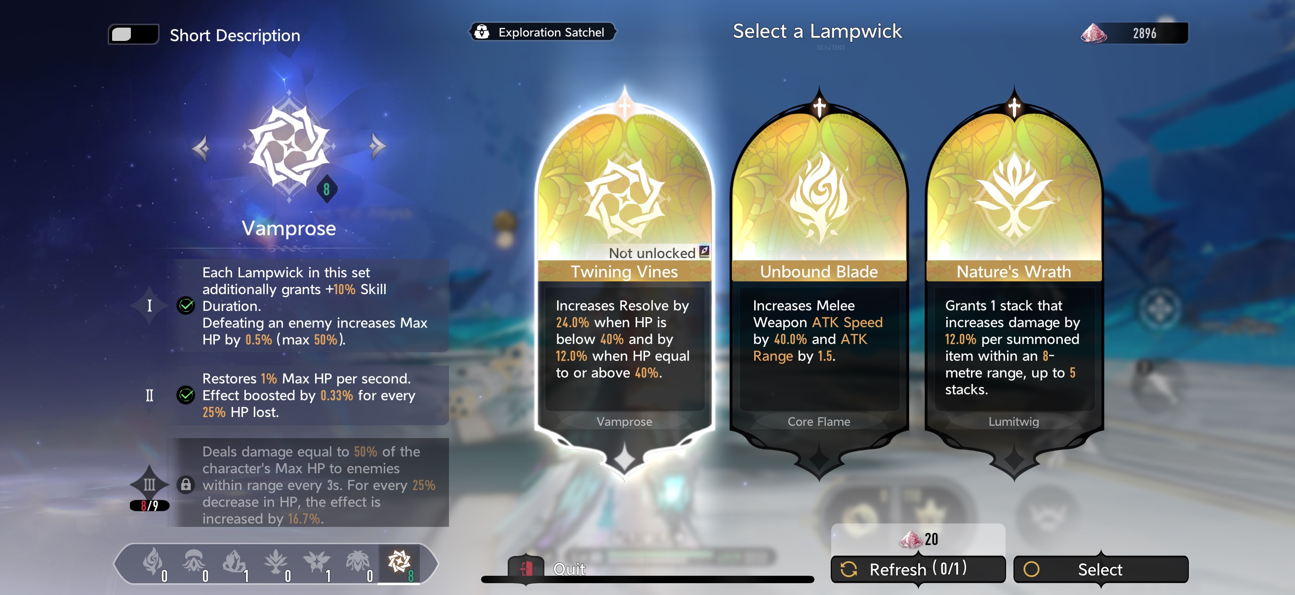 Played Maze for ~4.5 hours tonight, bought a bunch of blueprints/wedges and unlocked 7 new lampwicks! Only missing 4 of them now, and Glimmerfly, Core Flame, and Vamprose are all fully unlocked as of tonight (I’d already finished Seaborne Moon) ☺️