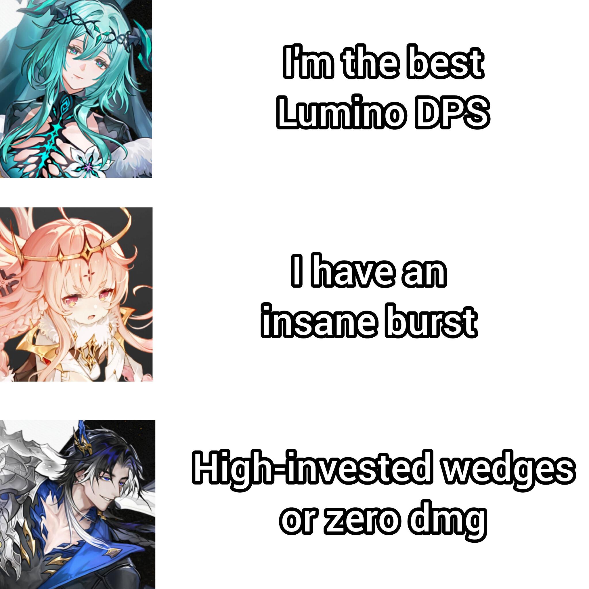 to me, kezhou is the best lumino dps against the bosses. his aoe isn't enough/great as lisbell&nifle